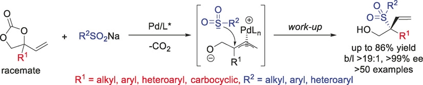 2)Ajmal Khan*, Heng Zhao,Meina Zhang, Shahid Khan,Depeng Zhao*,Regio- and Enantioselective Synthesis of Sulfone-Bearing Quaternary Carbon Stereocenters by Pd-Catalyzed Allylic Substitution. Angew. Chem. Int. Ed. 2020, 59,1340 –1345. https://doi.org/10.1002/anie.201910378