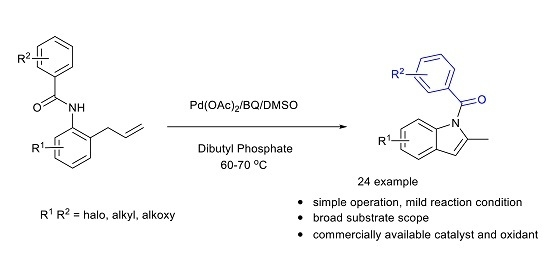1)Zhe Chang,Tong Ma,Yu Zhang,Zheng Dong,Heng Zhao,Depeng Zhao* Synthesis of Functionalized Indoles via Palladium-Catalyzed Cyclization of N-(2-allylphenyl) Benzamide: A Method for Synthesis of Indomethacin Precursor.Molecules 2020, 25(5), 1233. https://doi.org/10.3390/molecules25051233